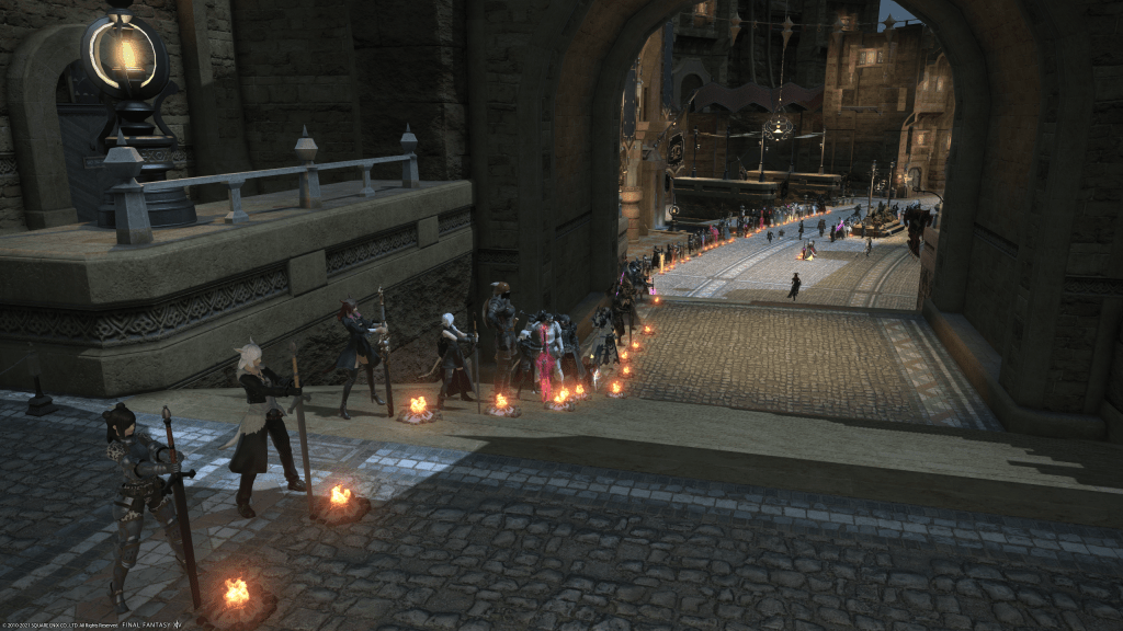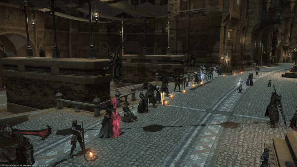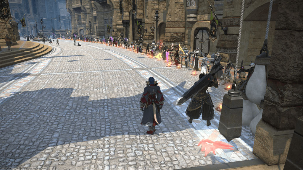 The line while not as long as another server’s Balmung (which reached from end to end) eventually hit the other archway in the later hours.