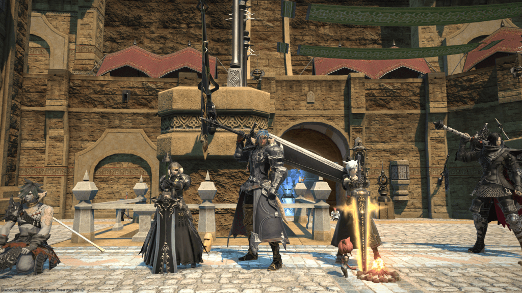 The Final Fantasy XIV Job Class Dark Knight also draws influence from Berserk’s main character Guts, dark edge-y armour, huge big sword, etc. The FFXIV community on hearing of his passing did an amazing tribute across a lot of servers where they formed a line of Dark Knights at one of the starting cities Ul’dah. Shown below is the line forming on Coeurl