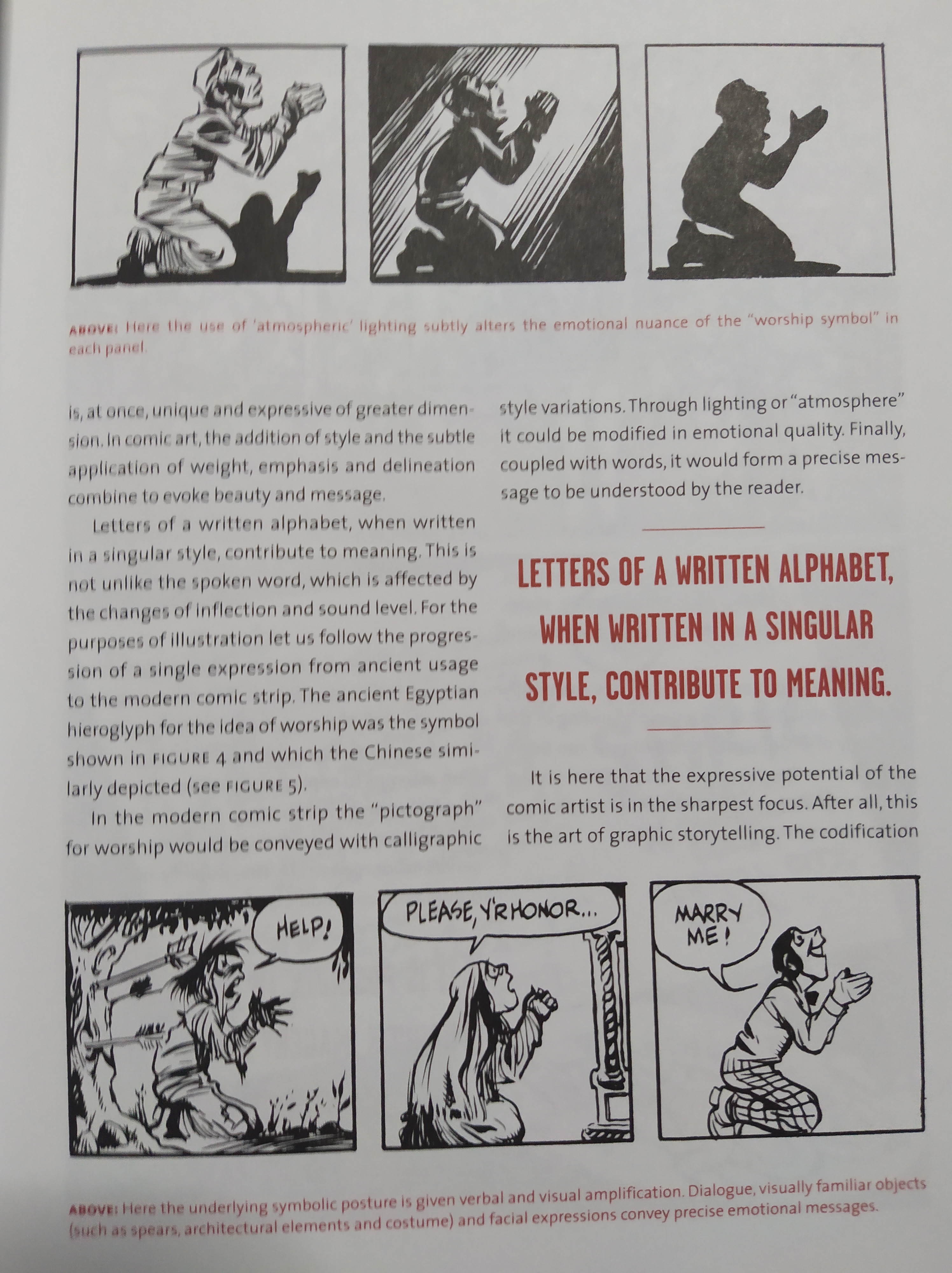 Inspiration: This book gives you the explanation in words to tools and methods that you may know of but were never really able to put into words yourself such as the different types of speech bubbles, ways the body form can be interpreted, how framing works etc. Its inspiring to be able to see these layed out so you can attempt to try them yourself in your next/first comic.