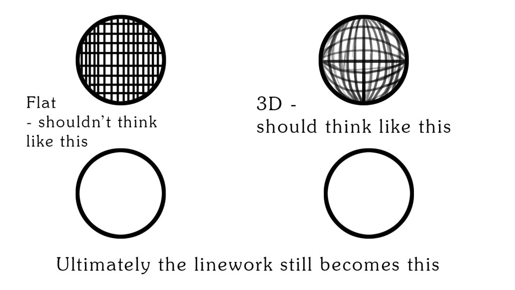 They cannot think of things as flat when they draw them but they will always end up being flat by the nature of the media/genre.